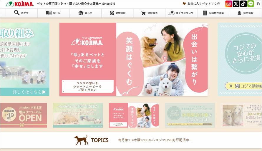 そんな株式会社コジマでは、近年、ペット事業に関する多種多様な取り組みを知ってもらい、多くの人に実店舗へ足を運んでもらえるよう、マーケティングに注力しています。CINCがSEOの支援をしている公式サイトの運用もそのひとつです。