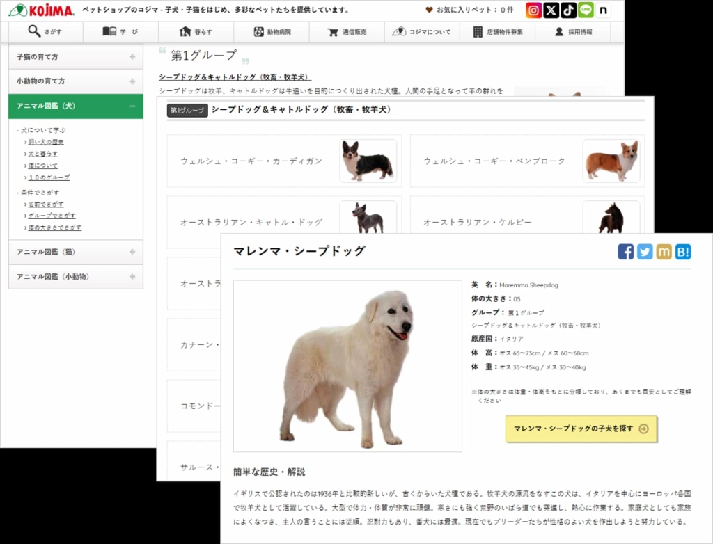 より多くの人にコンパニオン・アニマルと暮らす素晴らしさを伝えるには、正しい情報を学んでいただかなくてはなりません。世の中にたくさんの情報があふれる中で、「コジマのサイトならペットに関する正しい情報が見つかる」という立ち位置を目指したいです。リニューアル後は構造の最適化やSEO強化をさらに進め、弊社が伝えるべき情報をより多くの方へ届けられるサイトを作りたいと思っています。